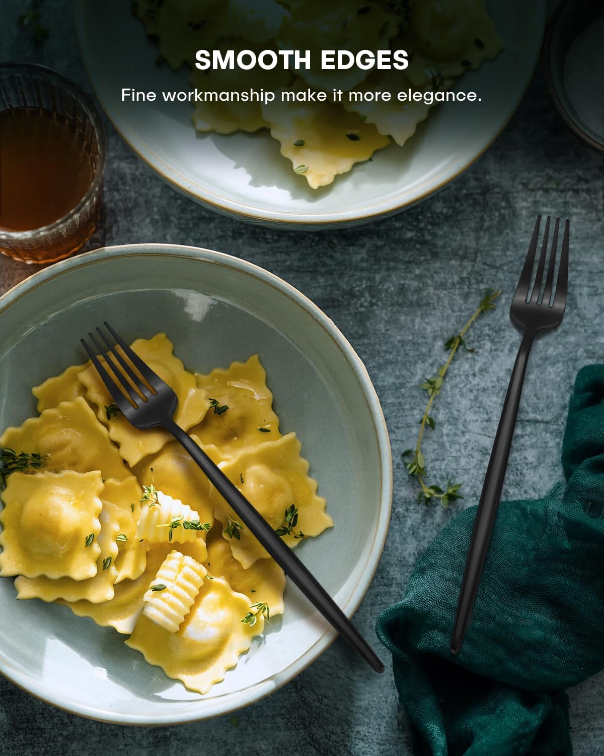• Premium Matte Grey Black Silverware Set - 40 pieces flatware set specially designed for 8 people(Includes 8 dinner forks, 8 salad forks, 8 dinner spoons, 8 teaspoons and 8 dinner knives). The matte surface makes the cutlery set more elegant, suitable for kitchens, restaurants, cafes and hotels. And it can also help your dinner full of high-end feeling while having a party.