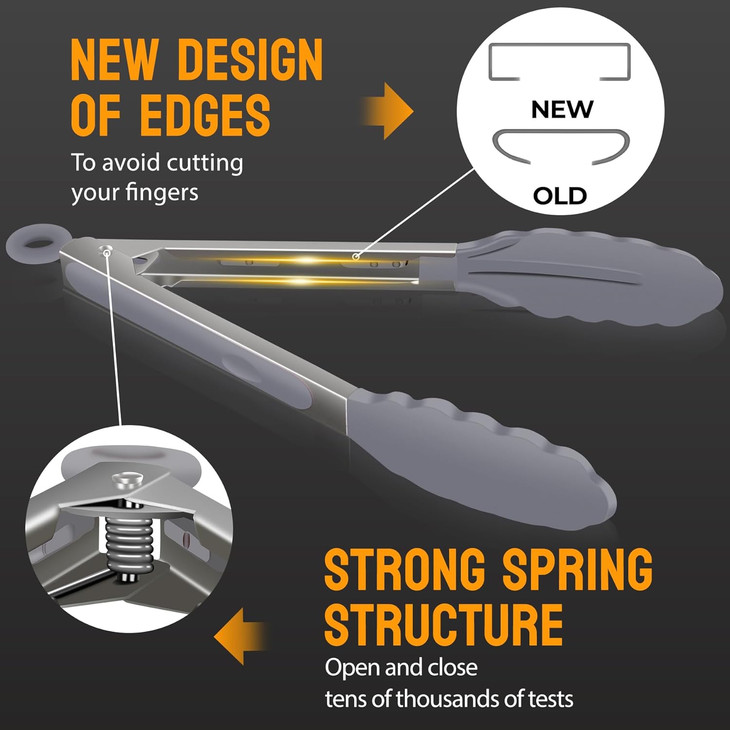 • EASY TO STORE: These kitchen tongs have locking mechanism, pull the ring for lock and push for unlock, super easy operation. Hang them with the hanging loop after use or put in the drawer by pulling the ring to lock it, space saving.