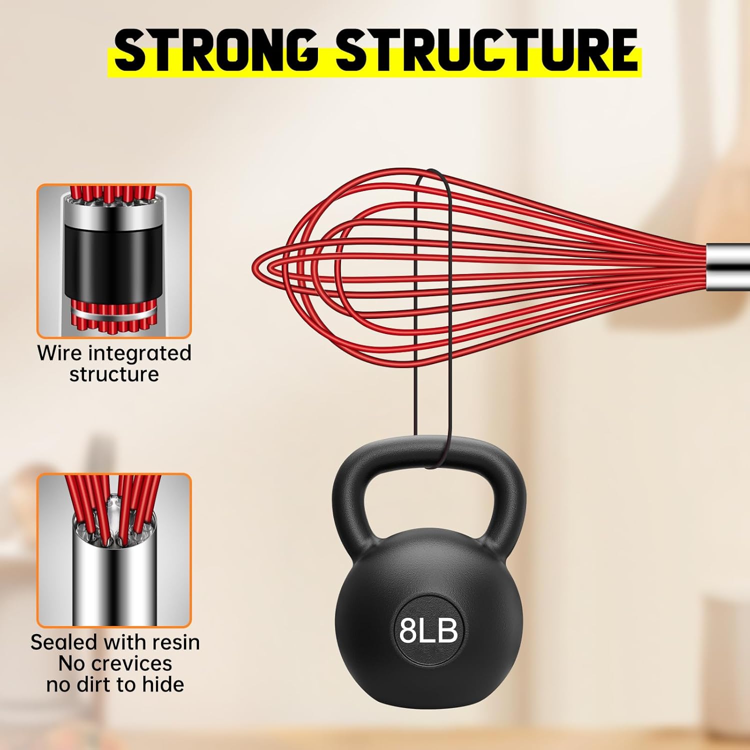 • 484ºF High Heat-Resistant: Feature BPA free silicone wires. 1.65mm thickened wires coated in 0.3mm soft silicone makes it stronger and more durable. Great for stirring sauces and gravies while heating.