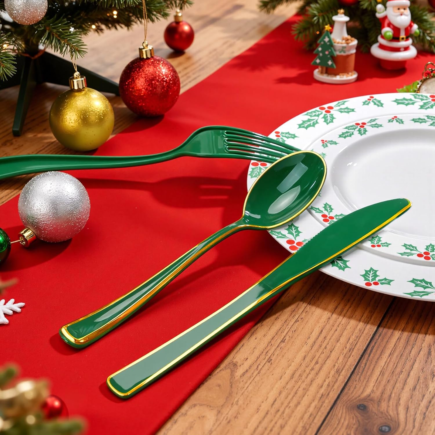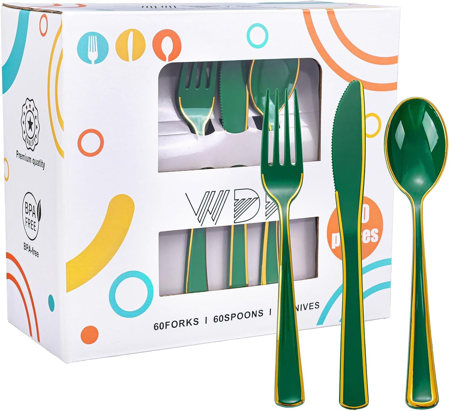 • PERFECT FOR ANY OCCASION: This set of green and gold disposable silverware are perfect for birthday parties, outdoor events, weddings, reunions, and holidays such as St. Patrick's Day, Christmas, etc.