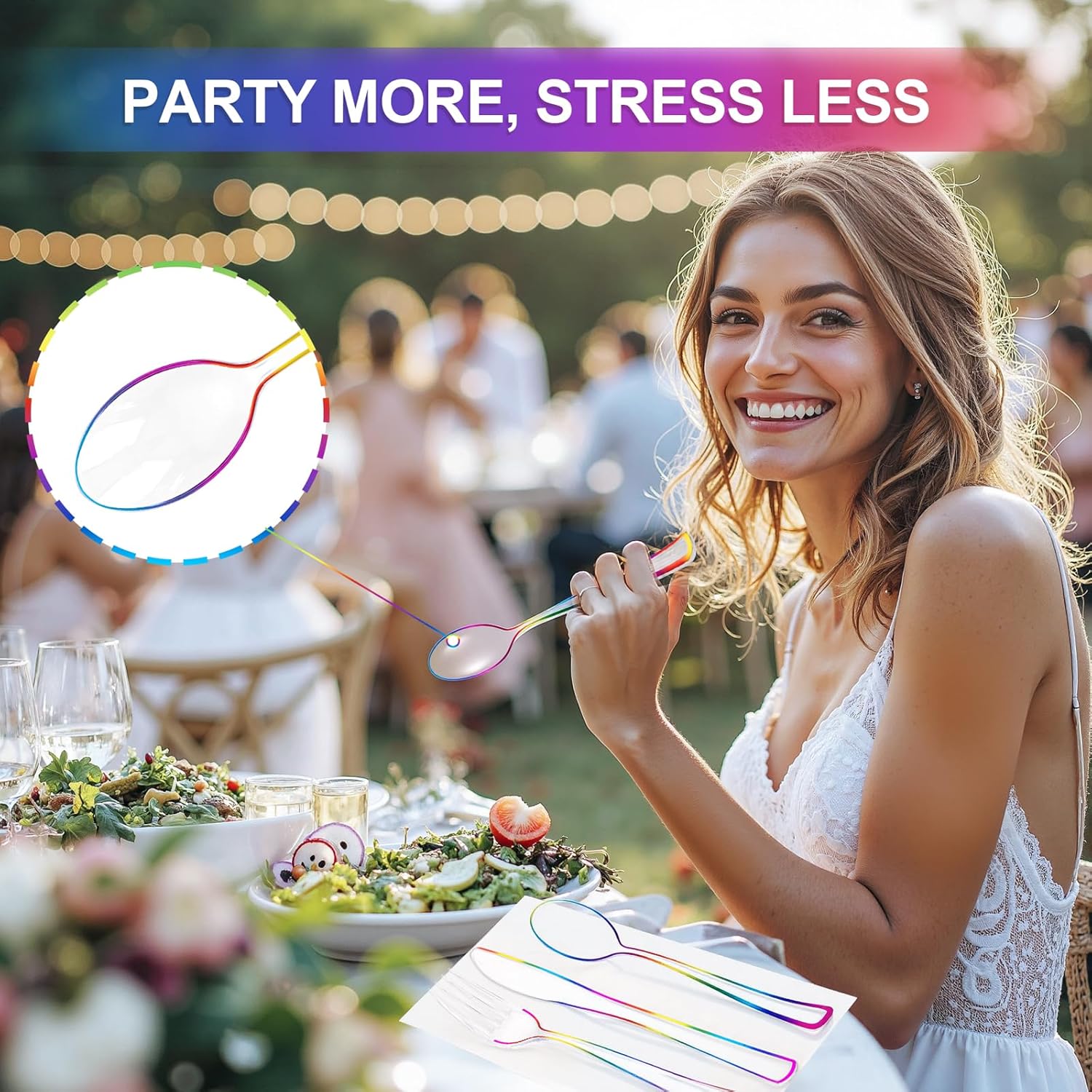 • YOU WILL GET: The rainbow plastic silverware includes 60 forks, 60 knives and 60 poons for 60 guests.