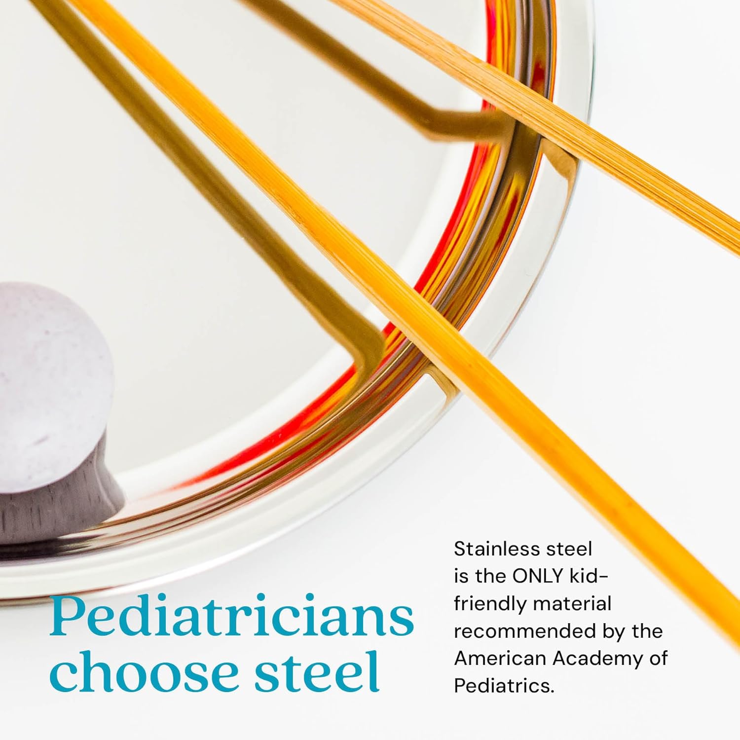 • 𝐂𝐥𝐚𝐬𝐬𝐢𝐜 𝐒𝐭𝐲𝐥𝐞 & 𝐄𝐜𝐨-𝐅𝐫𝐢𝐞𝐧𝐝𝐥𝐲: Our timeless silver stainless kids plates blend elegance and safety for toddlers and children. Families love these stainless steel kid plates; we care deeply about children’s health and chose this process for its safety, making them the go-to metal plates for kids for every home
