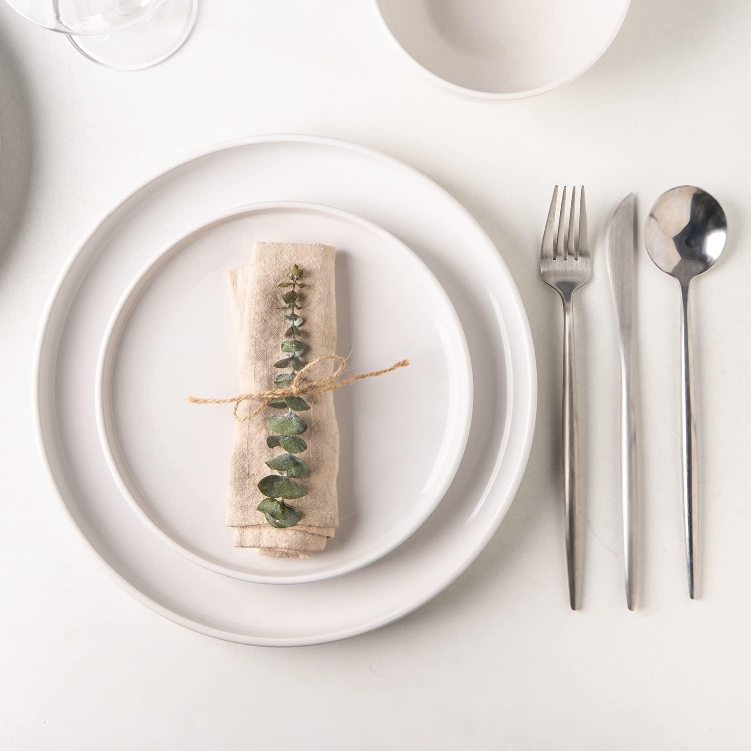 • STRENGTH AND DURABILITY:After High temperature and long time firing, our plates very strong .the plates set is microwave also, also do well in dishwasher and freeze.Our glaze is also extra strong to prevent scratches from your knives and forks up to 1000kgs pressure.The .Please note dark marks may occur on some certain silverware, which are not scratches, but metal residue marks.those metallic stains can be removed.