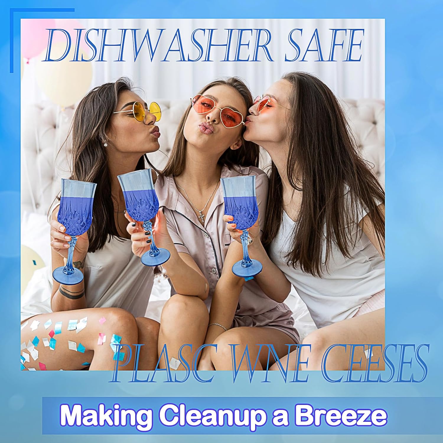 48 PCS Blue Plastic Wine Glasses,Reusable Plastic Wine Glasses,Blue Goblet Glass,Durable and Sturdy Cups Can Be Used for Various Parties Such as Weddings!