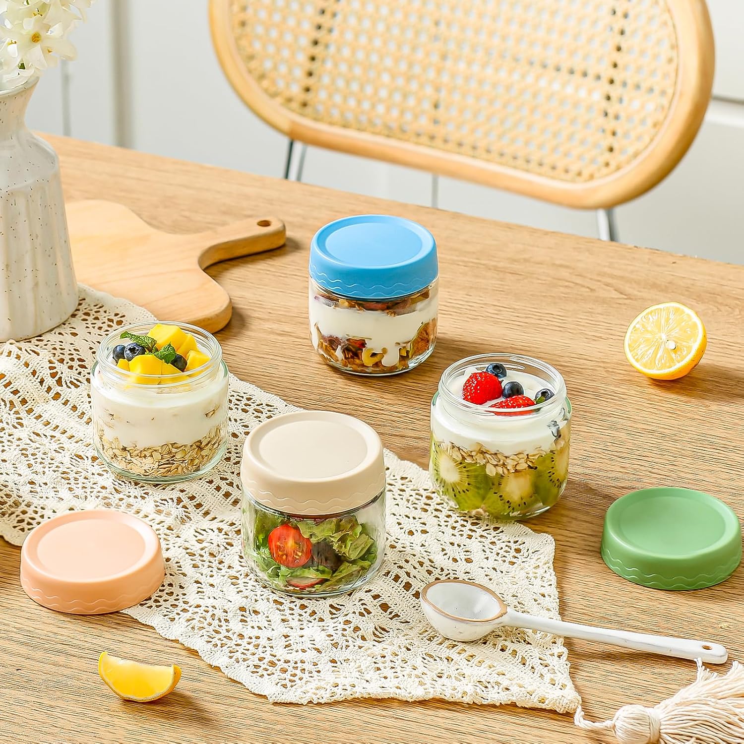 • VERSATILE CREATIVE STORAGE: Explore our set of four 10oz glass jars with airtight lids, perfect for a variety of storage and creative needs. Ideal for everyday yogurt and oatmeal, these mason jars also excel in making homemade jams, pickles, and sauces, blending smoothies, or crafting delicious desserts and DIY projects, they offer a practical and stylish solution for preserving, storing, or displaying your creations.