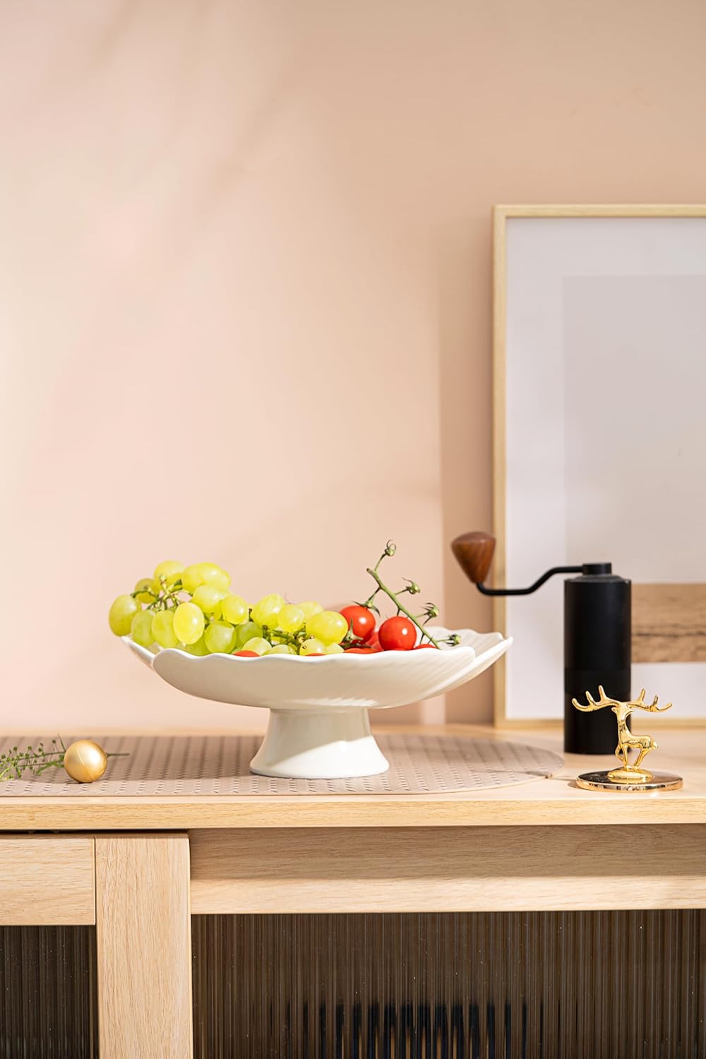 Ceramic Fruit Bowl for Kitchen Counter, Decorative bowl, Pedestal bowl, Footed bowl, Modern fruit bowl, Large fruit bowl, Decorative bowls for home décor, White fruit bowl, 10.5 ""