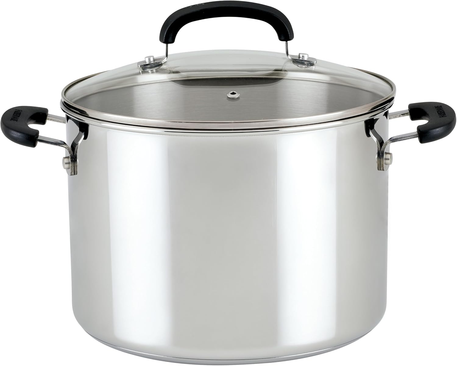 Farberware Brilliance Stainless Steel Stockpot with Glass Lid, 8 Quart, Dishwasher Safe and Induction Ready, Compatible with All Cooktops, Stainless Steel