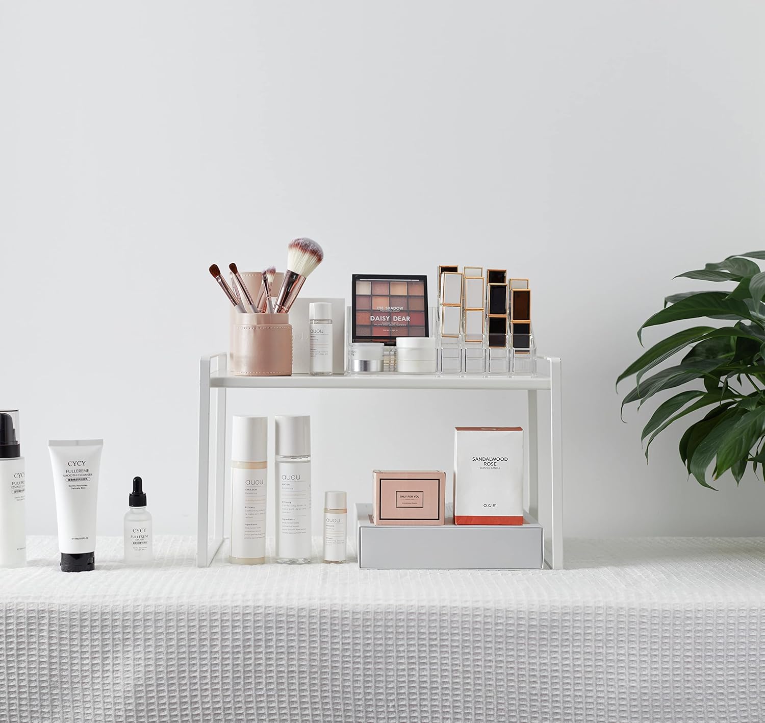 • CHARACTER DESIGN: This cabinet shelf can create plenty of space for your household items such as cups, pots, bottles, bowls, cookware, or canned foods without dominating space in your cabinet. This stylish cabinet shelf fits neatly on the countertop to keep your essentials organized and easily accessible.