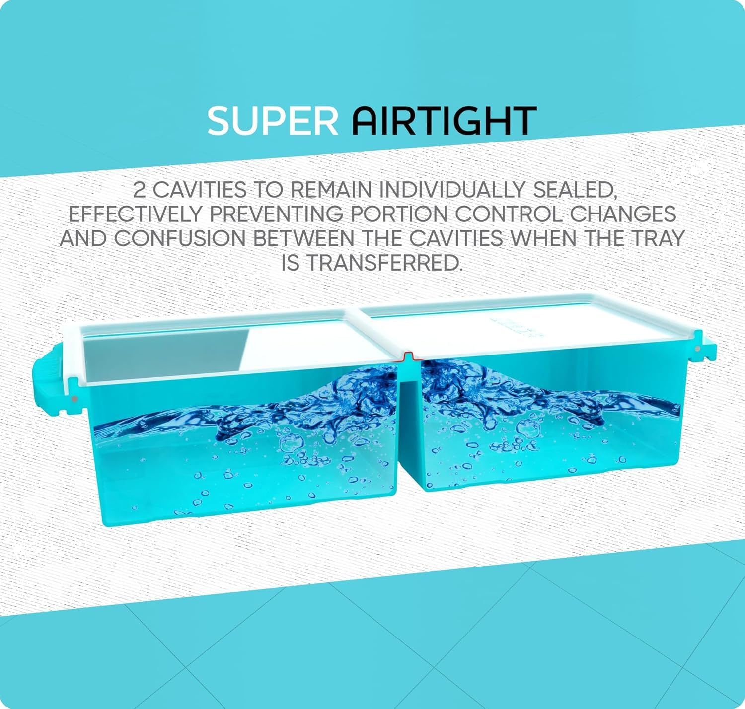 • BETTER SEALING AND LEAK-PROOF - Our clear silicone lid has excellent sealing and leak-proof properties, it allows the 2 cavities to remain individually sealed, effectively preventing portion control changes and confusion between the cavities when the tray is transferred
