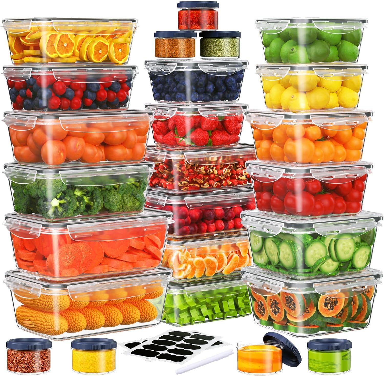 50 PCS Food Storage Containers Set, Plastic Food Containers for Pantry Kitchen Storage and Organization, Microwave and Dishwasher Safe, Leakproof & BPA-Free with Labels Pen(25 Containers & 25 Lids)