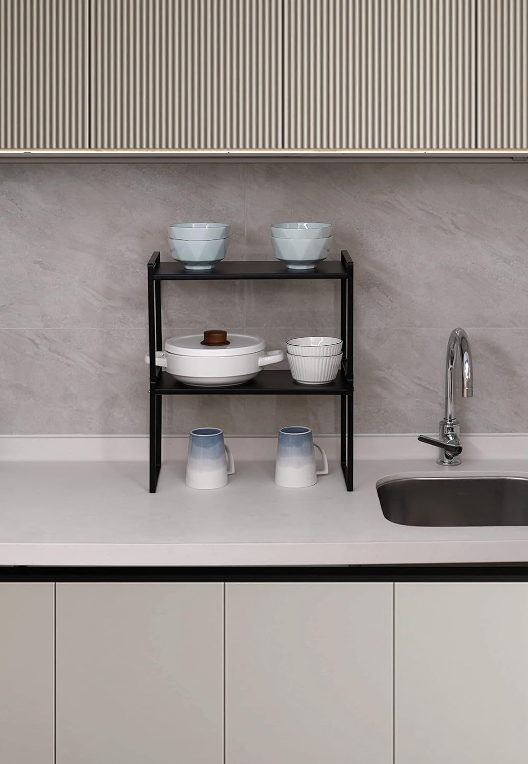 • CHARACTER DESIGN: This cabinet shelf can create plenty of space for your household items such as cups, pots, bottles, bowls, cookware, or canned foods without dominating space in your cabinet. This stylish cabinet shelf fits neatly on the countertop to keep your essentials organized and easily accessible.