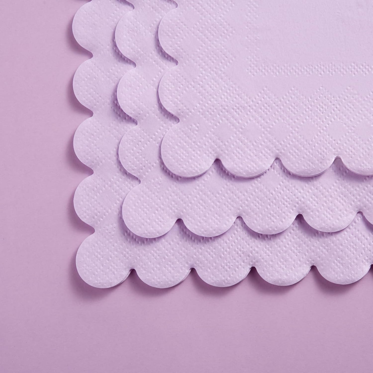100 Pack Cocktail Napkin 2-Ply Scalloped Edged Dessert Napkins Folded 5 x 5 Inches Disposable Napkins for Dinner Wedding Birthday Party Bridal Anniversary Reception Event (Purple)