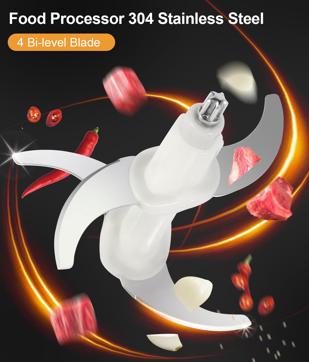 Meat Grinder, 500W Powerful Food Processors, 8Cup Stainless Steel Bowl, 3 Speed Modes 4 Bi-Level Blades for Onion, Meat, Nuts, Fruit, Garlic, Vegetable, Baby Food