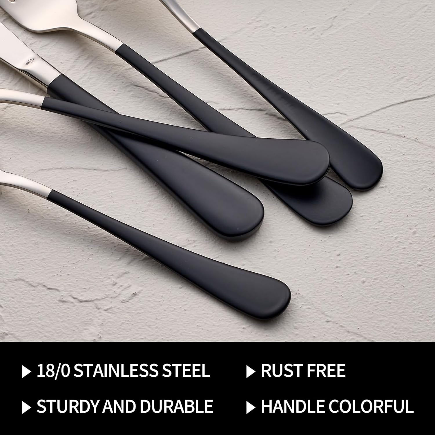 20-Pieces Black Silverware Sets for 4,Black Handle Stainless Steel Cutlery Set, Include Forks Spoons and Knives Set, Dishwasher Safe Utensil Sets for Home Restaurant