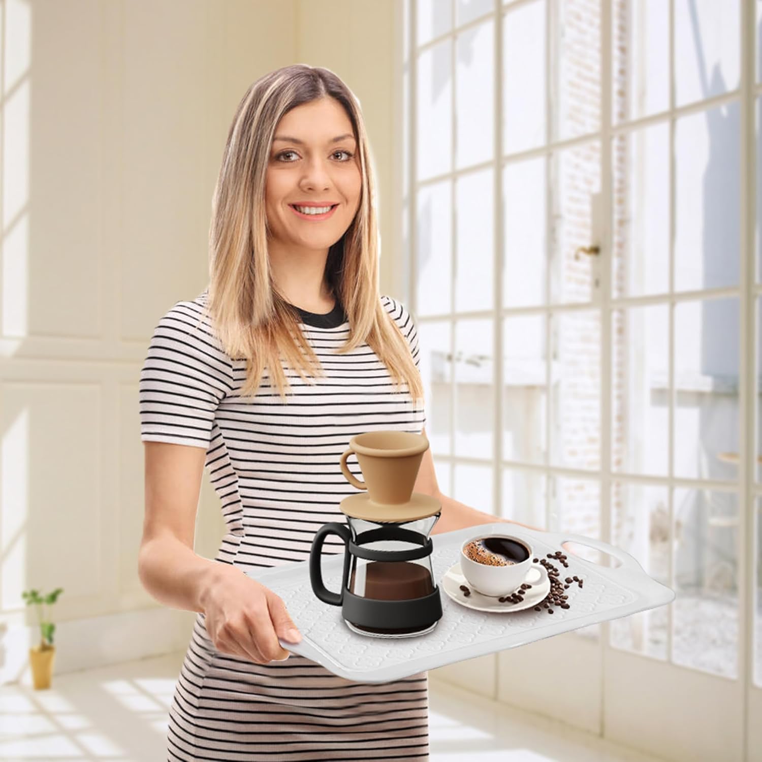 • VERSATILE USAGE: Great Choice to be a snack tray for finger food or fruit, to be a food tray for transporting meals like Ribs and sides or use them for grilling Platter and charcuterie trays as well. We placed 2pc placemats and can also use as a nonslip tray .