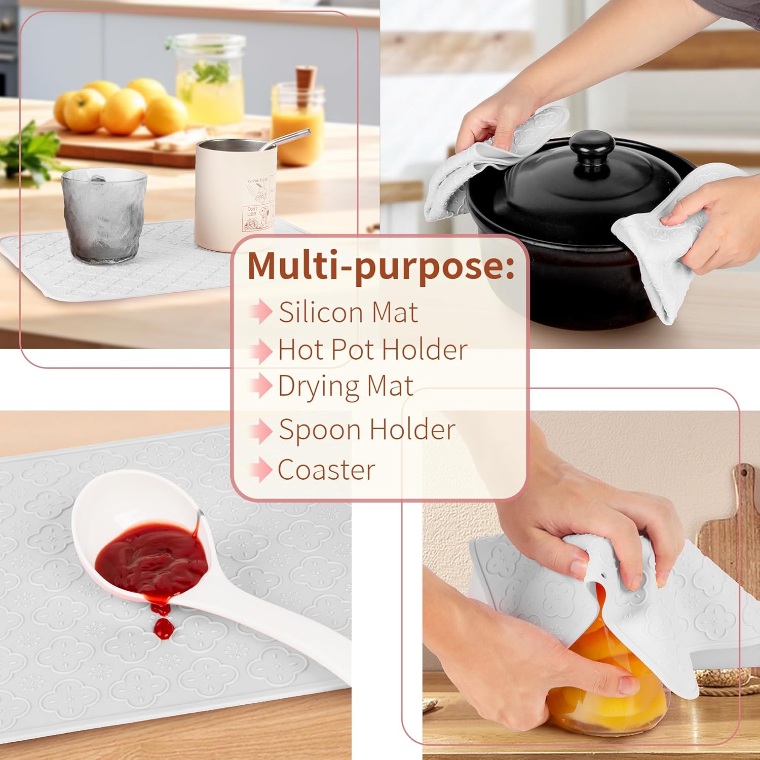 • FOOD GRADE MULTIPURPOSE SILICONE PLACEMATS: 100% BPA free silicone dinning mats. Reusable and recyclable approved. Heat resistant between -40° and 260°. These mats are durable and can last for years. Ideal for daily use for food prep and serving for years. Great surface protector. Go with our tray to be ideal for transporting your plates or glass without sliding off.