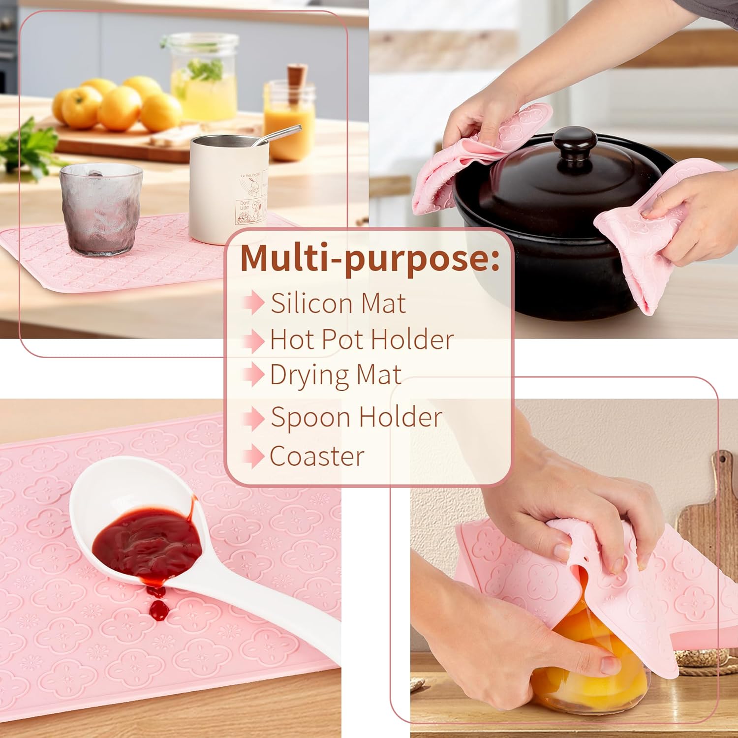 • FOOD GRADE MULTIPURPOSE SILICONE PLACEMATS: 100% BPA free silicone dinning mats. Reusable and recyclable approved. Heat resistant between -40° and 260°. These mats are durable and can last for years. Ideal for daily use for food prep and serving for years. Great surface protector. Go with our tray to be ideal for transporting your plates or glass without sliding off.