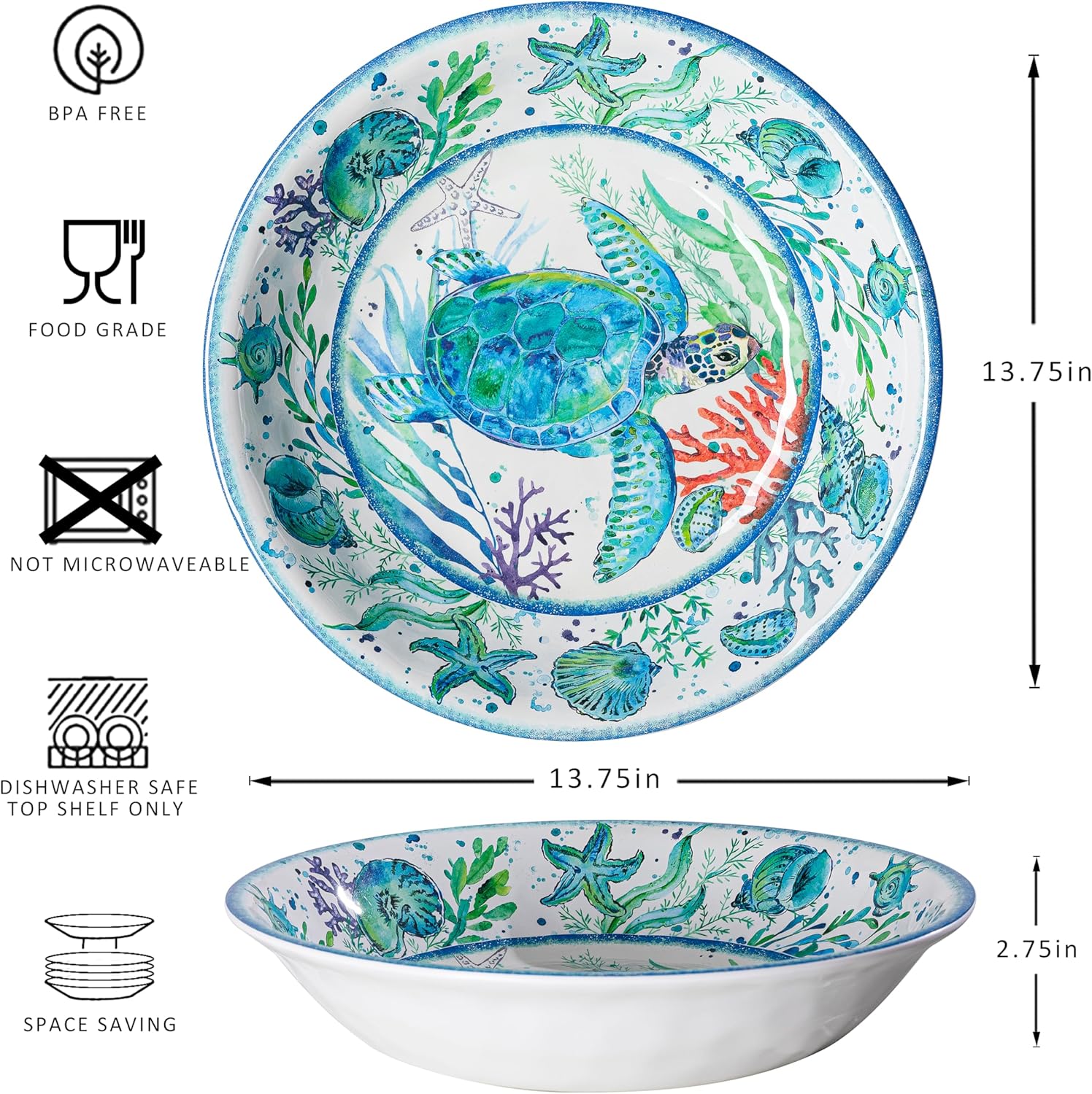 LEHAHA Extra larger Melamine serving bowl set, Coastal 13.75 Inch 130 Oz Large Fruit Bowl, Pasta Bowl, Set of 2, Serving Dishes for Entertaining, Vibrant Color Large Bowl for Party…