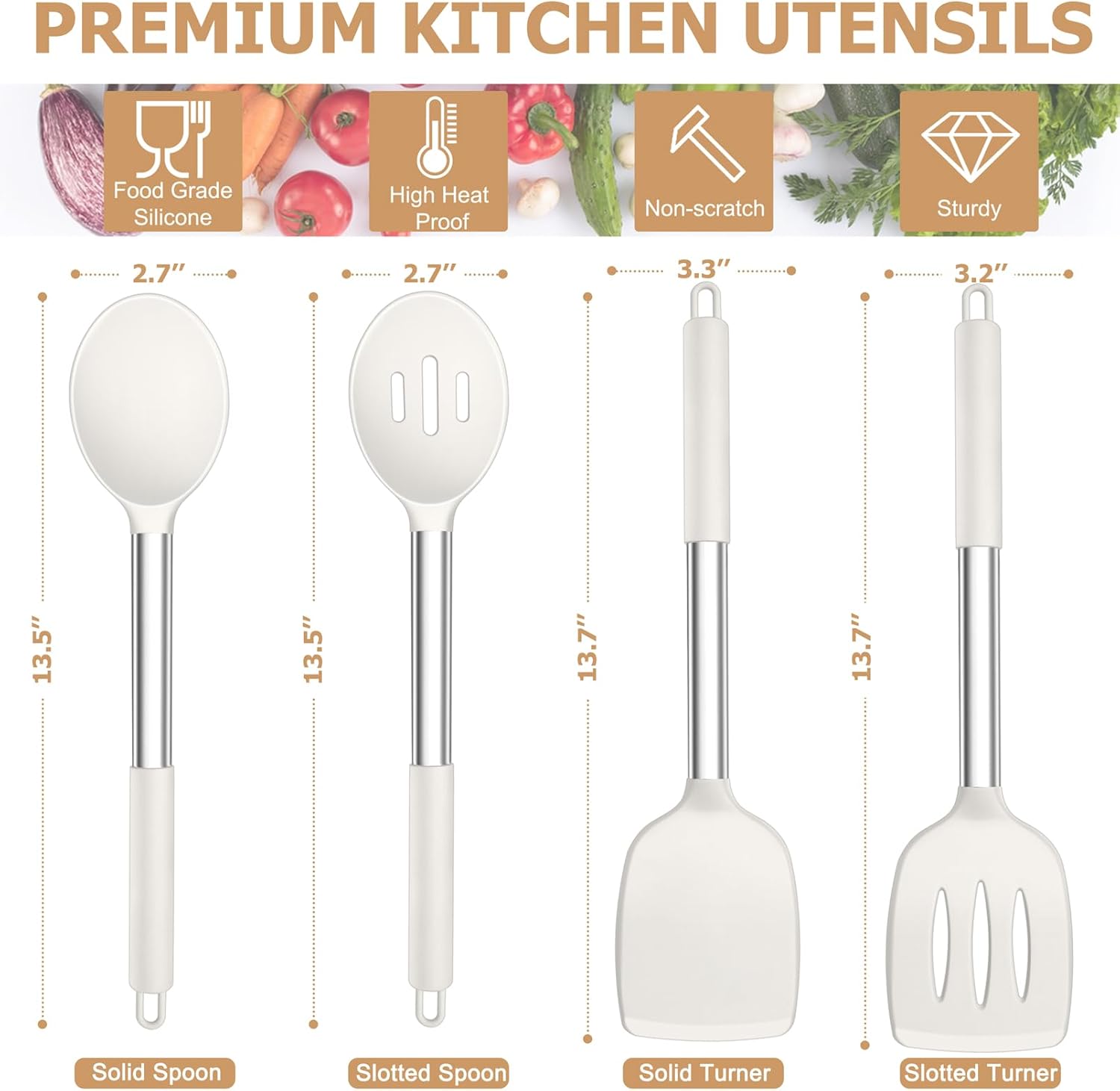 • ERGONOMIC DESIGN – Slotted turner and spoon designed for effectively draining out excess grease to get a healthier meal, The stainless steel handle covered with silicone sleeve for better heat insulation and non-slip silicone offers you a comfortable grip, White and silver combination definitely a great décor in your kitchen