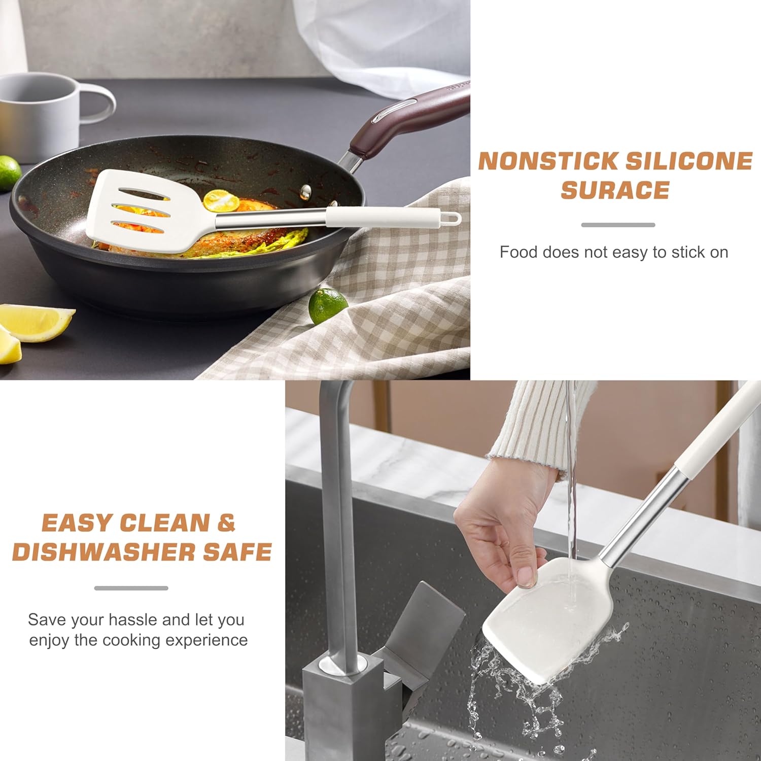 • ANTI-SCRATCH & HEAT-PROOF – Silicone spatulas and spoons are engineered soft enough to protect your non-stick cooking pans from scratches, Effective to extend cookware’s service lifespan, Superior to metal cooking utensils, Silicone heads stand up high temperature up to 446 °F (230 °C), No melting or deforming during cooking, Providing a safe cooking experience