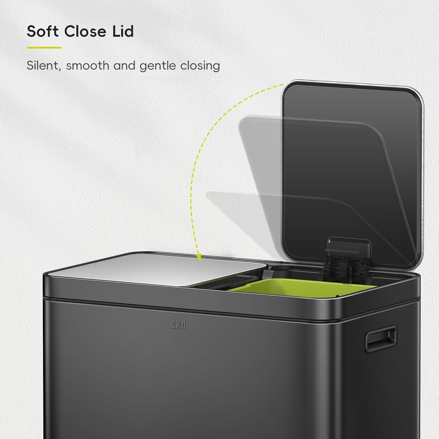 • Dual Pedal Recycler – Effortlessly sort trash and recyclables with two 8-gallon color-coded inner buckets, the EKO dual trash can features separate step pedals and lids for hygienic, no-fuss disposal