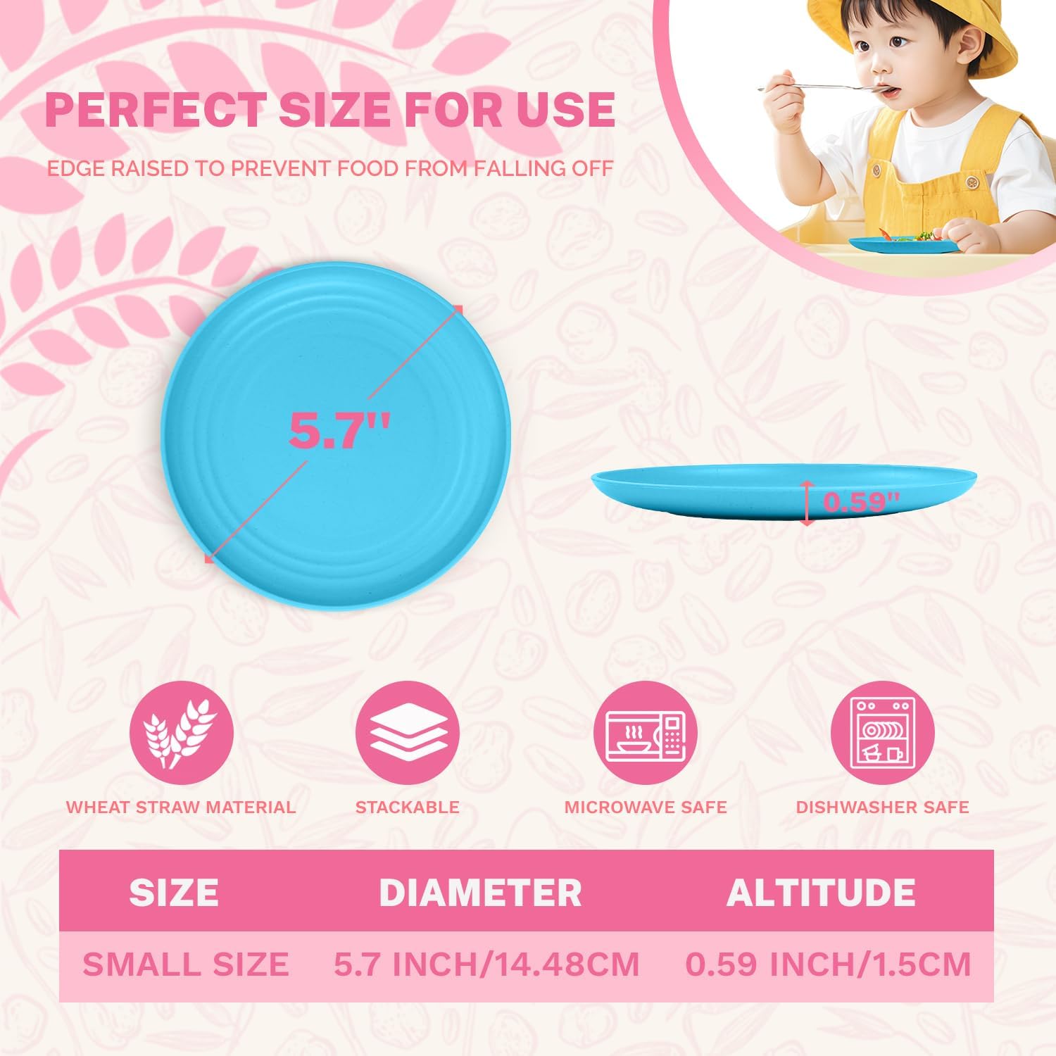 • 🎨[π€π«π­π’π¬π­π’πœ πƒπžπ¬π’π π§ & π„π§πœπ‘πšπ§π­π’π§π  𝐏𝐚π₯𝐞𝐭𝐭𝐞] The small wheat straw plates feature the colorful Memphis design, adding a lively and artistic feel to the room. The bright colors not only look great but also help grab children's attention and encourage family interaction, making meals more fun.