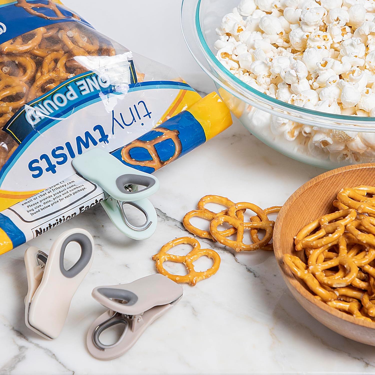 • Set includes 20 plastic bag clips with soft touch rubber handles in a beautiful array of shades- the great shape and size clip for all different sized bags of chips and food.
