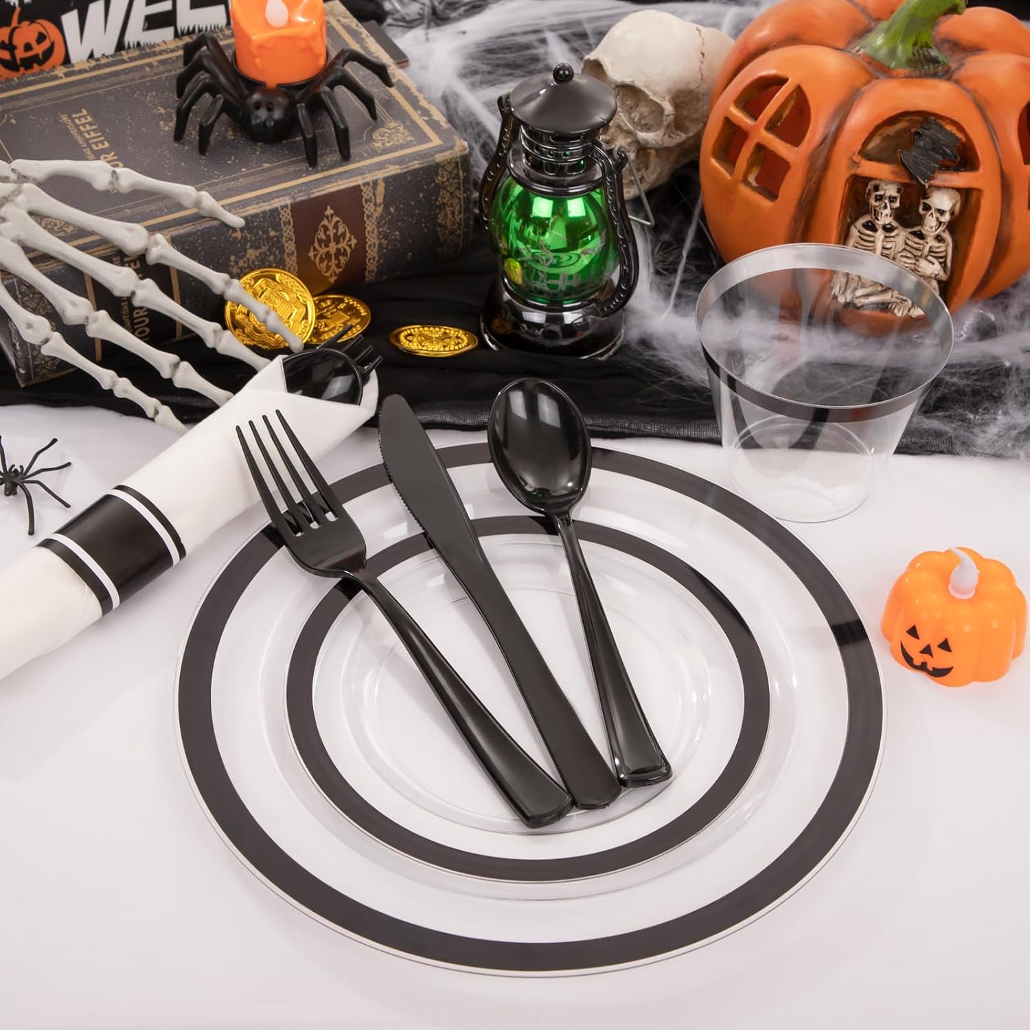 • PERFECT FOR VARIOUS OCCASIONS - Whether it's a Halloween party, a family gathering, or any other celebration, this black party plates offers a unique dining experience, and our clear plastic plates help you easily create memorable party moments!