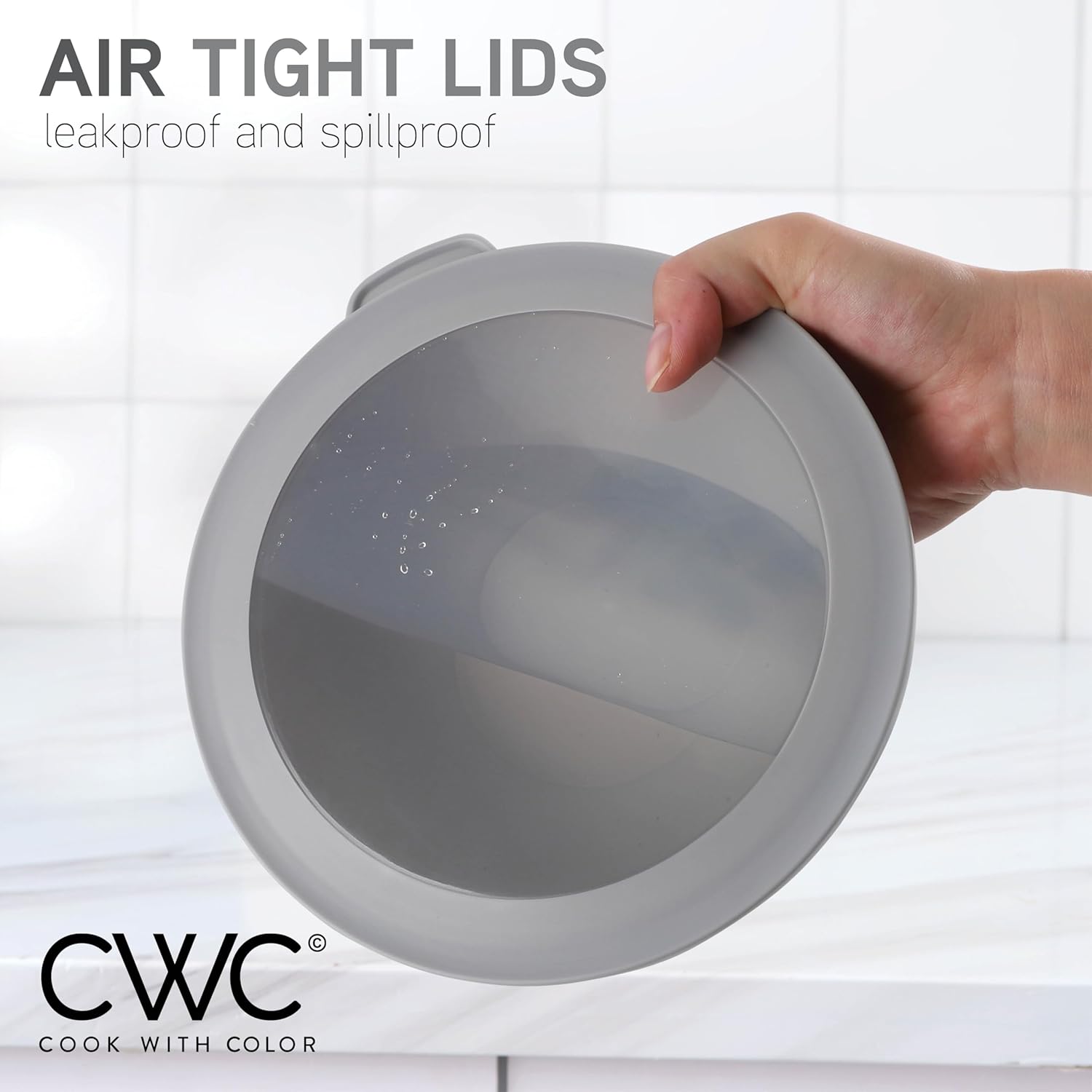 COOK WITH COLOR Mixing Bowls with Lids - 12 Piece Plastic Nesting Bowls Set includes 6 Prep Bowls and 6 Lids, Rhombus Design - Microwave Safe (Grey)