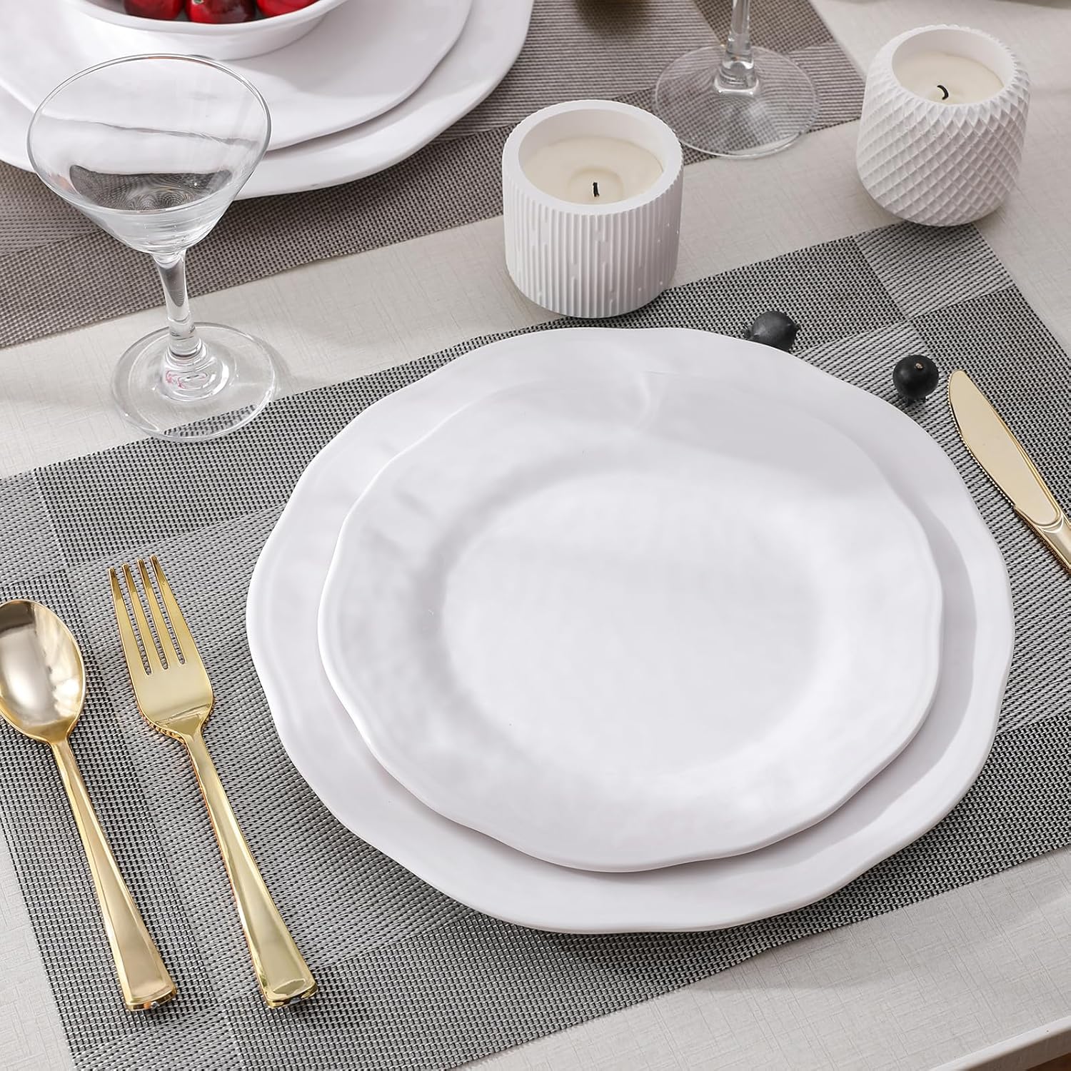 • PERFECT for INDOOR and OUTDOOR USE: This white plates and bowls set is not only as dinner set use for daily family, also great for indoor and outdoors parties such as patio entertaining, poolside, picnics, RVs, camping and travel trailer.