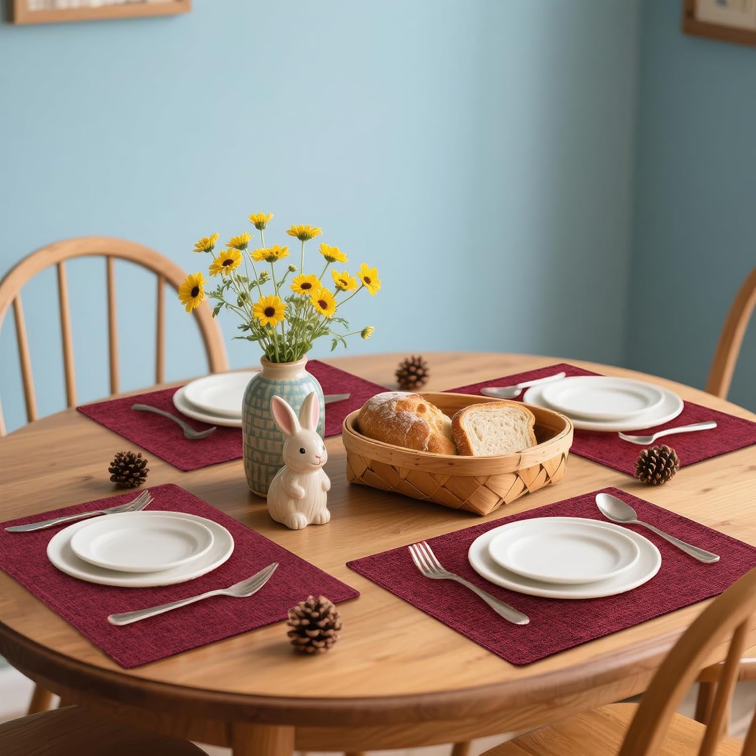 • √ MATERIALS: Our placemats are made of linen and cotton, durability and washable, liquid can go through placemats, anti-heat and anti-stain, protecting your table from all kinds of debris and stains.