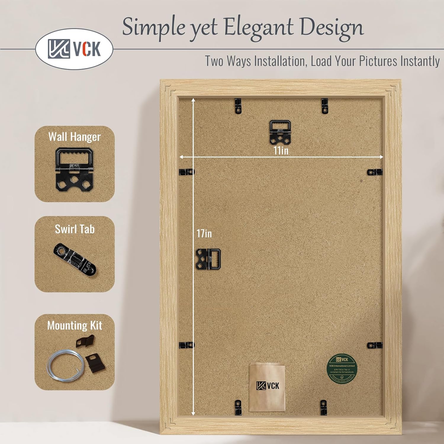 VCK 11x17 Picture Frame 5 Pack - Oak, Natural Solid Wood Poster Frames, Wall Gallery Frame