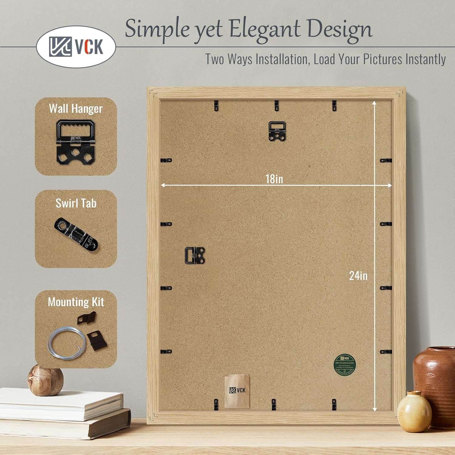 VCK 18x24 Oak Wood Frame for Poster & Picture, Natural Solid Wood Photo Frames 5 Pack, Wall Mounting Hanging