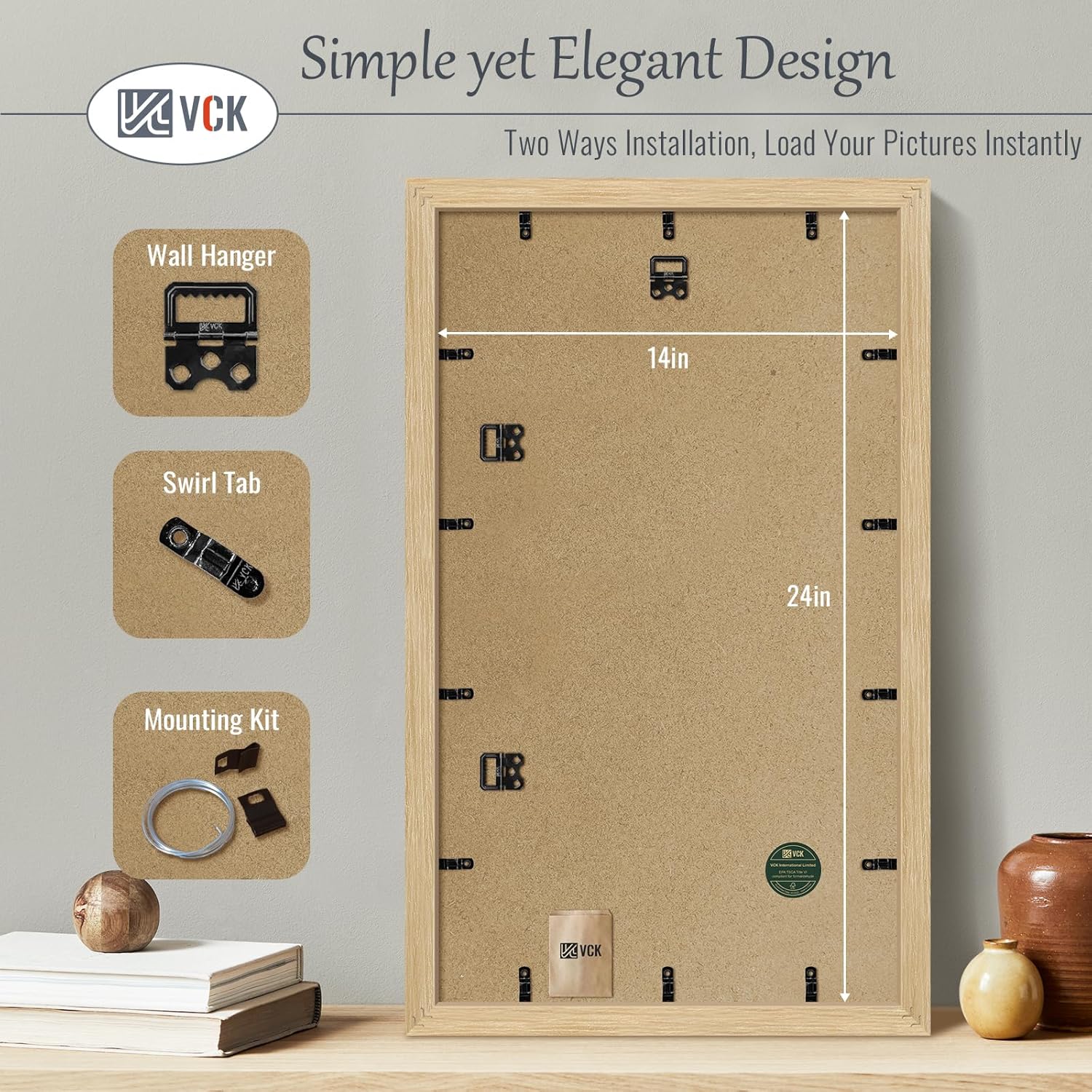 VCK 14x24 Oak Wood Frame for Picture, Natural Solid Wood Photo Frames 5 Pack, Wall Gallery Frame