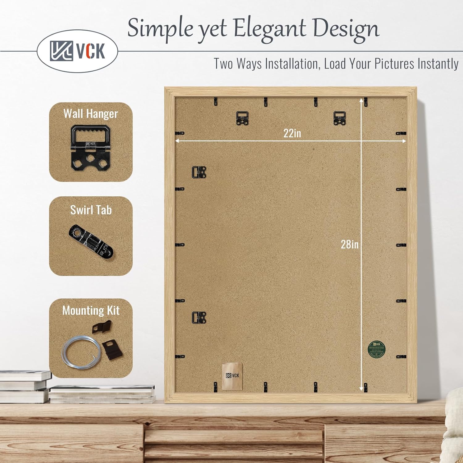 VCK 22x28 Oak Poster Frame 5 Pack, Natural Solid Wood Picture Frames, Wall Mounting Hanging