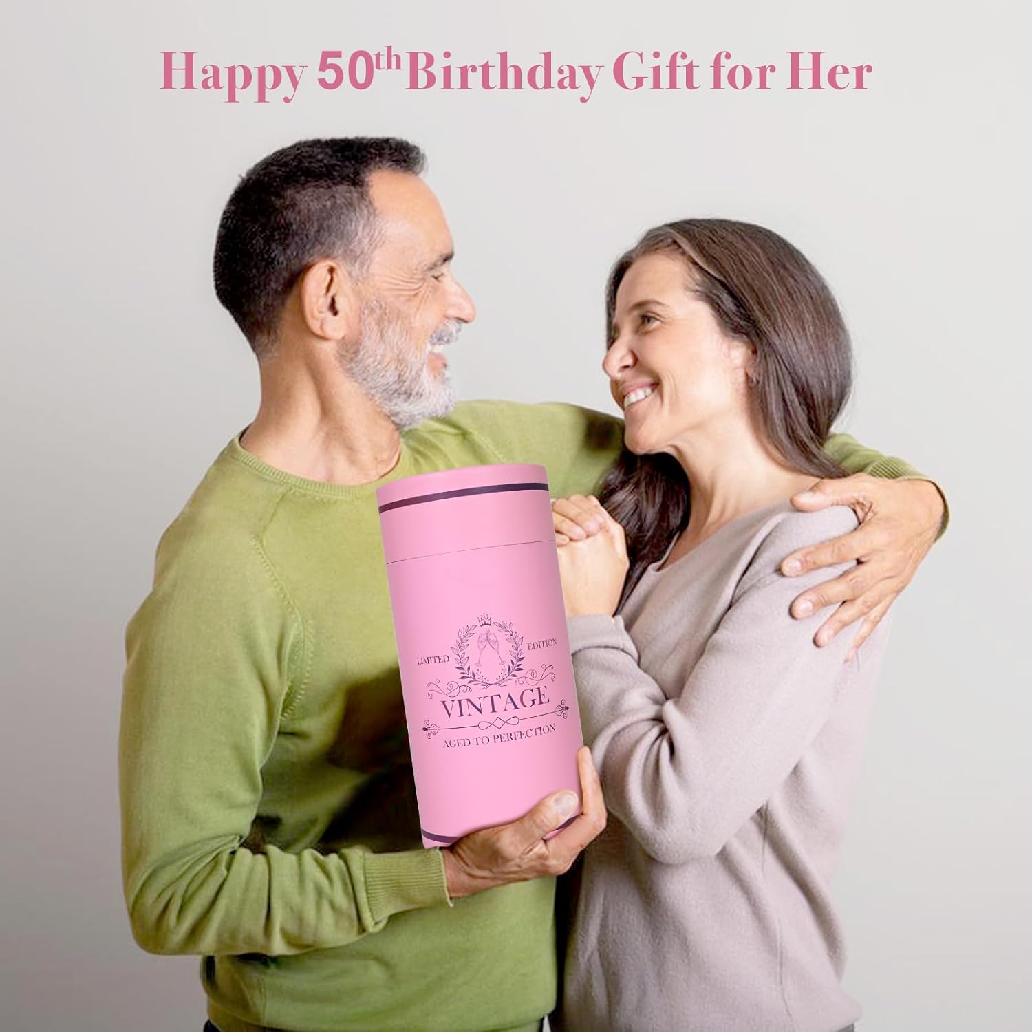 • Great Gift for Women 50th Birthday - Struggling to find the ideal 50th birthday gift for a wine loving woman? Look no further than this unique, customized 1975 Wine Gift Box! Featuring an elegant crystal glass stamped with personalized, noble golden lettering and presented in a luxurious cylindrical gift box, this gift is perfect for celebrating her 50th birthday or anniversary. It will definitely impress her at first sight and convey your heartfelt sentiments.