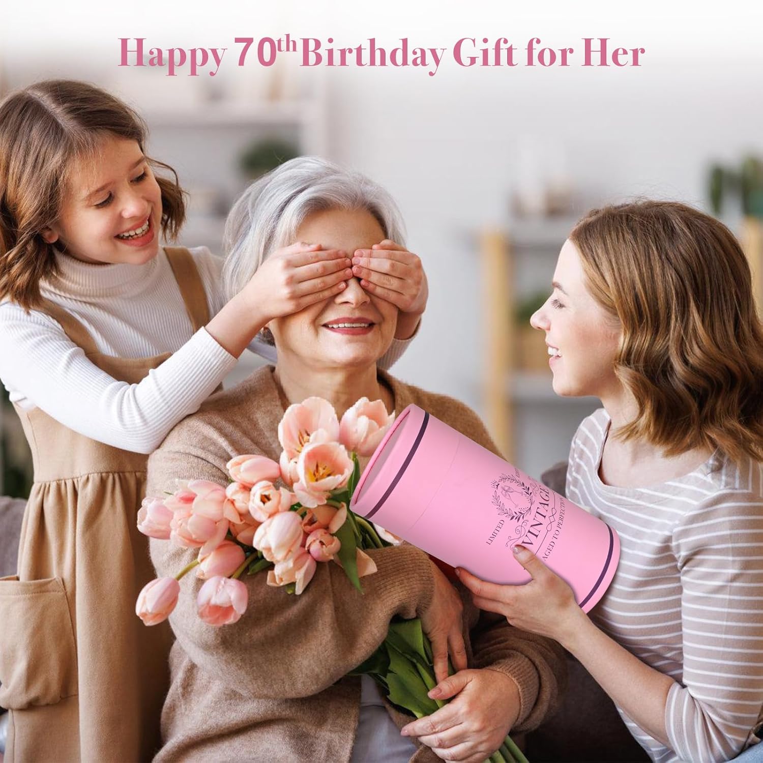 • Great Gift for Women 70th Birthday - Struggling to find the ideal 70th birthday gift for a wine loving woman? Look no further than this unique, customized 1955 Wine Gift Box! Featuring an elegant crystal glass stamped with personalized, noble golden lettering and presented in a luxurious cylindrical gift box, this gift is perfect for celebrating her 70th birthday or anniversary. It will definitely impress her at first sight and convey your heartfelt sentiments.