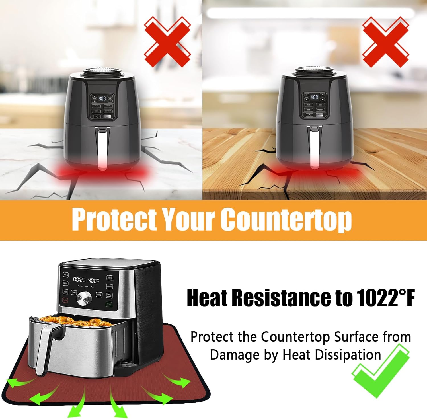 Heat Resistant Mat for Air Fryer, 16 x 24in Heat Resistant Mat for Countertop, Fireproof Silicone Countertop Protector Appliance Slider Mat for Air Fryer, Coffee Maker, Toaster, Oven (Red)