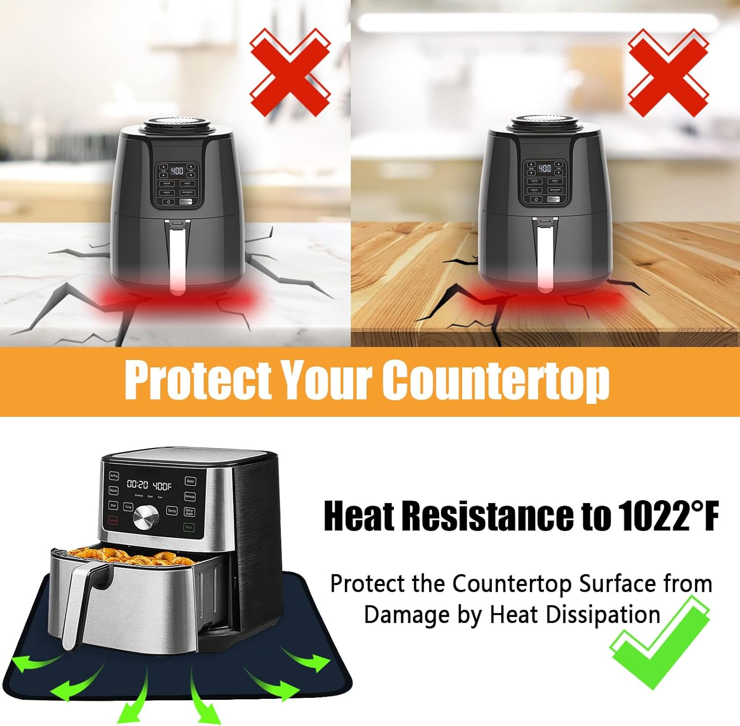 • 【1022℉ Fireproof】Different from other felt material mats, our heat resistant mat for air fryer is made of fiberglass, heat resistant silicone resin coated on both sides, which can provide heat resistance up to 550℃/1022℉.