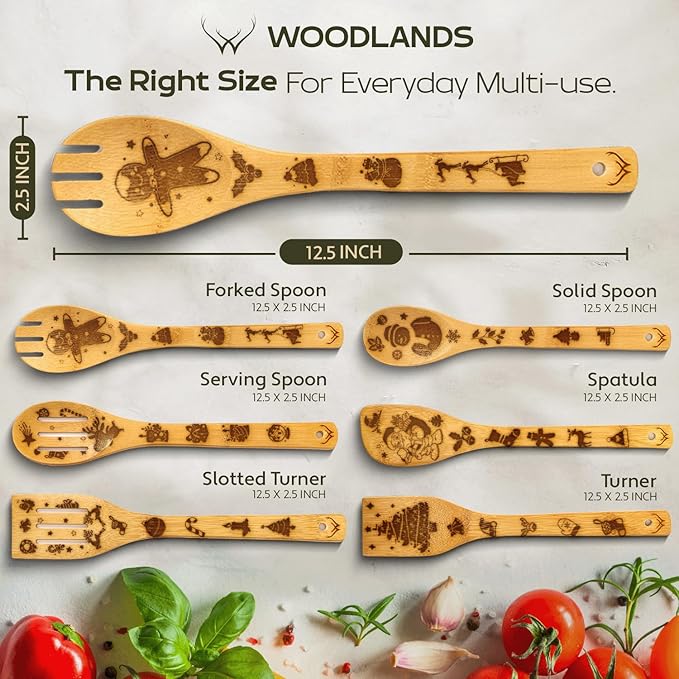 Wooden Spoons for Cooking - 6-Piece Wooden Utensil Set with Spatulas & Spoons, Heat-Resistant, Eco-Friendly Kitchen Utensils for Non-Stick Cookware (Christmas)