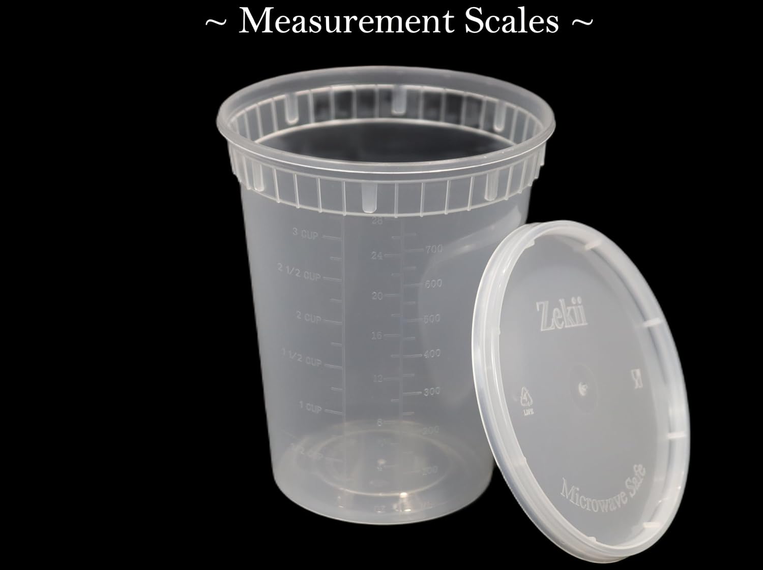 Zekii EXTRA THICK Deli Containers with Lids, Soup Containers w/Lids Airtight, 24Sets 32oz, Disposable, BPA Free, Takeout soup Cups, Meal Prep, Food Storage w/Measurements