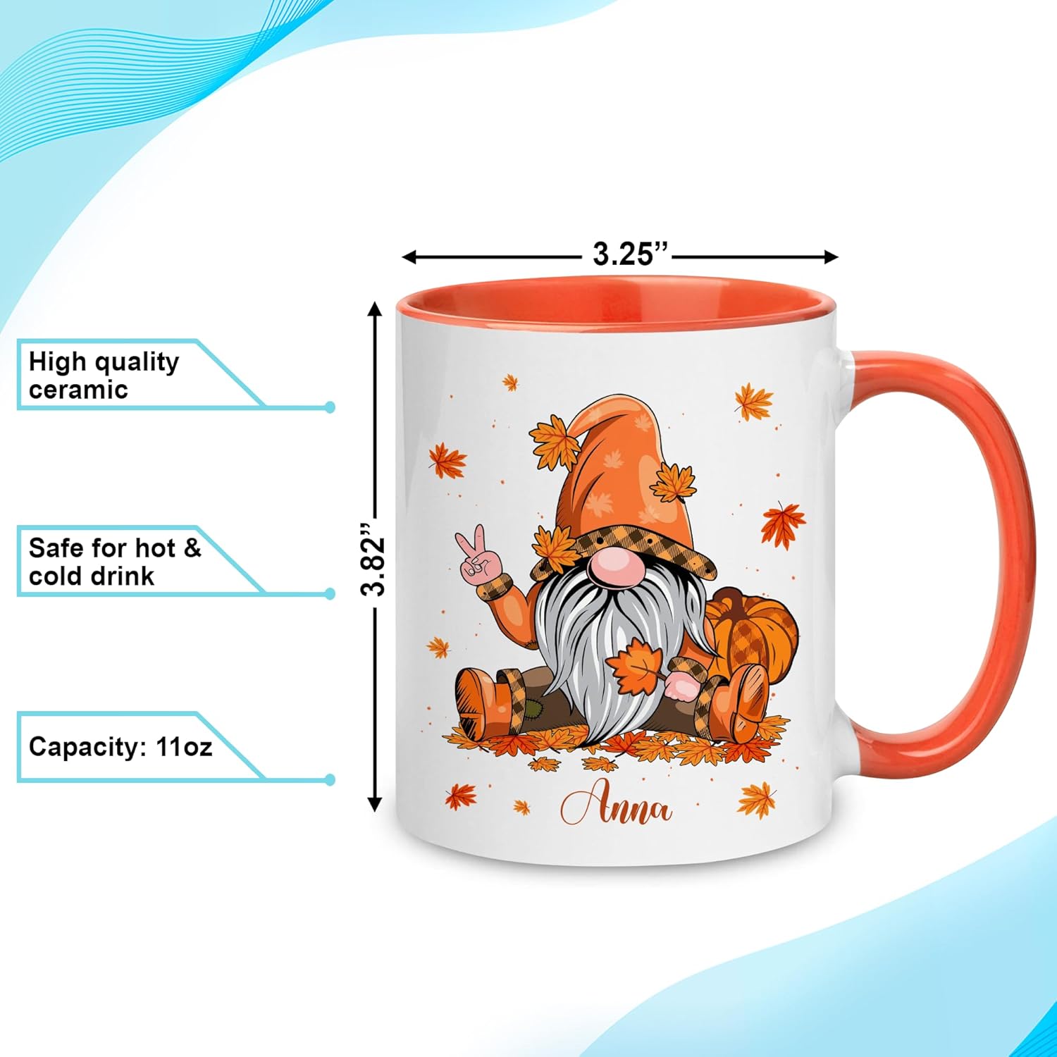 Hyturtle Personalized Fall Gnome Mug - Autumn With Pumpkin Maple Leaf - Custom Name Coffee Cup Ceramic 11oz 15oz - Gifts for Women - Fall Thanksgiving Decor - Birthday