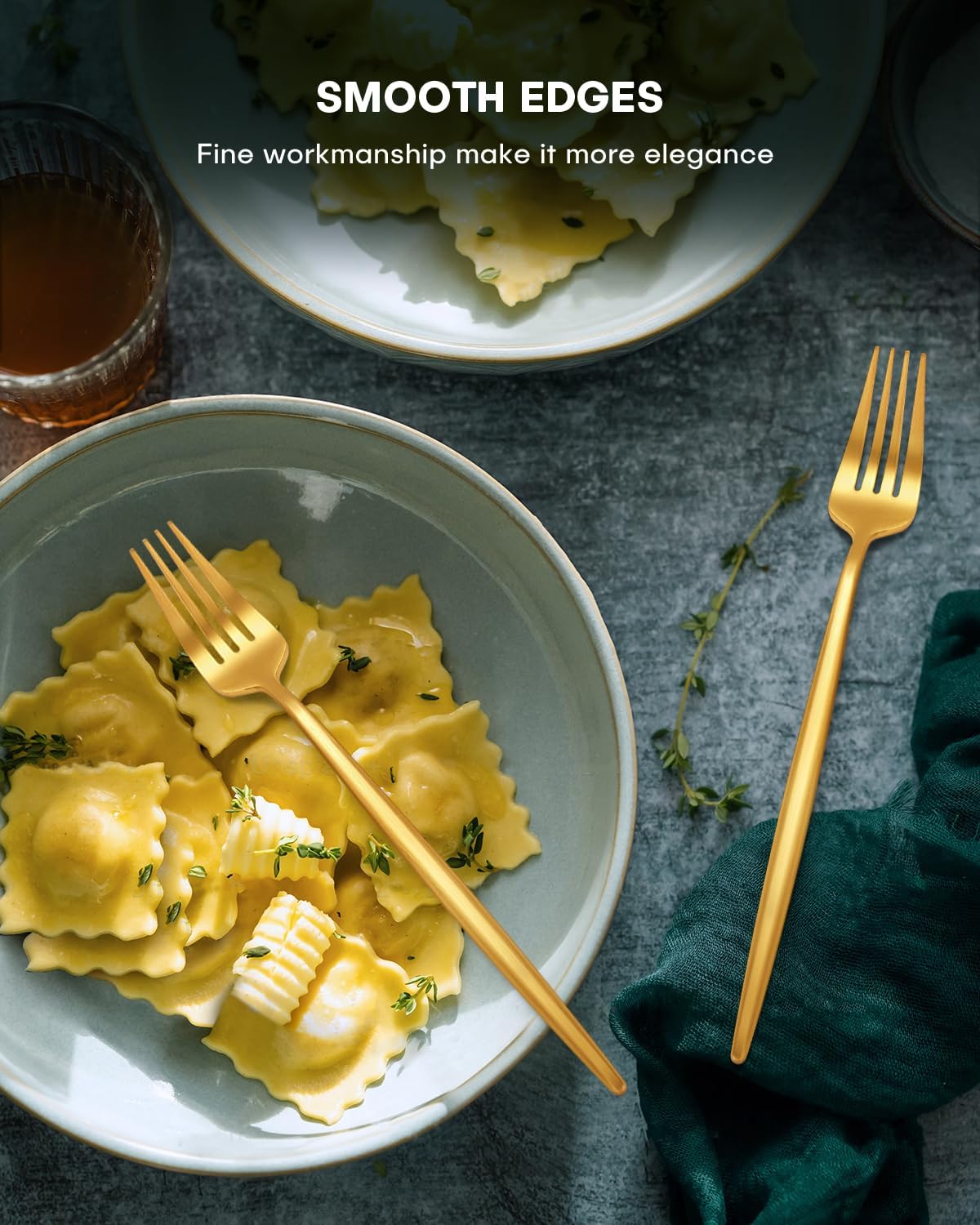 • Premium Matte Gold Silverware Set - 20 pieces flatware set specially designed for 4 people(Includes 4 dinner forks, 4 salad forks, 4 dinner spoons, 4 tea spoons and 4 dinner knives). The matte surface makes the cutlery set more elegant, suitable for kitchens, restaurants, cafes and hotels. And it can also help your dinner full of high-end feeling while having a party.