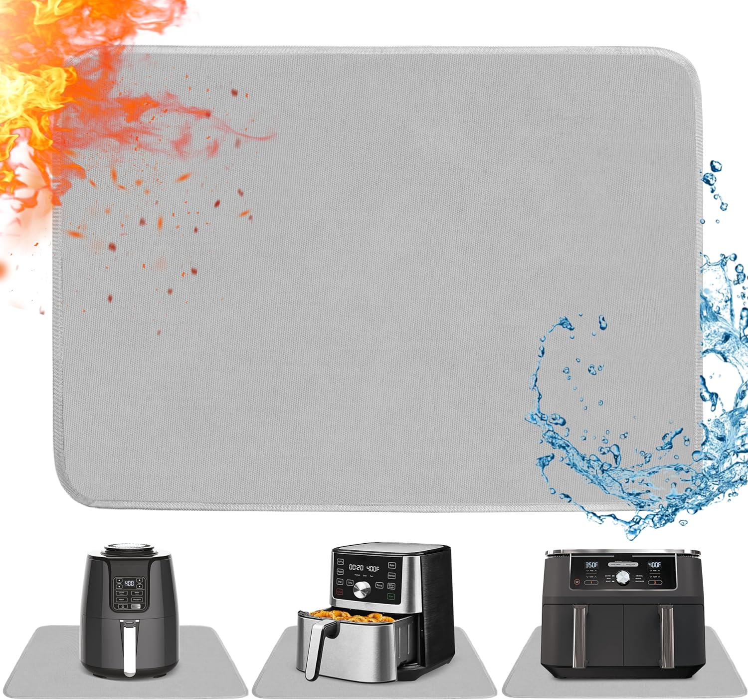 Heat Resistant Mat for Air Fryer, 21 x 29.5in Countertop Protector, Fireproof Silicone Appliance Slider for Coffee Maker, Toaster, Oven (Grey)