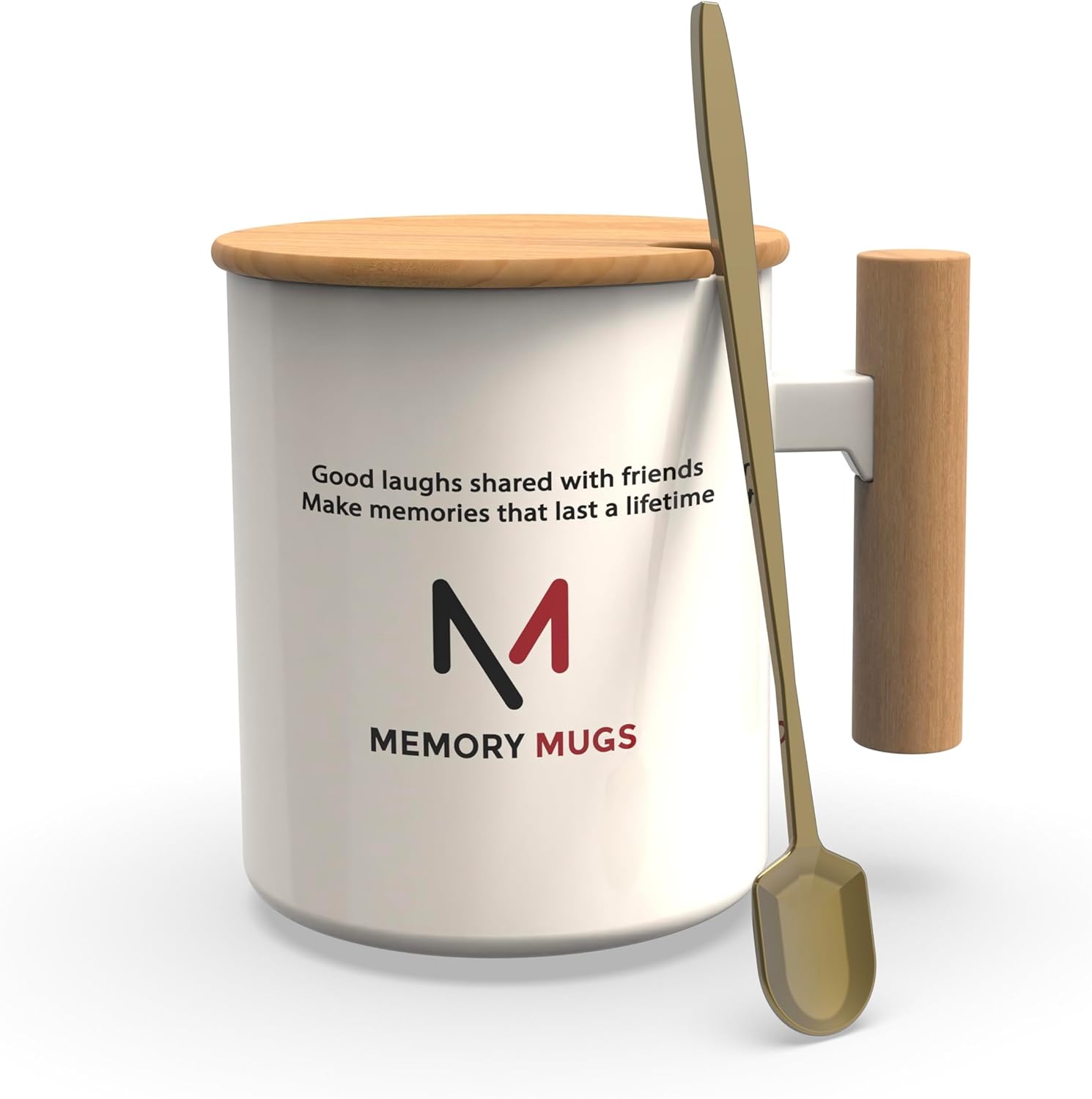 Ceramic Coffee Mug with Lid & Spoon – Large Tea Cup with Lid for Hot Drinks – Friendship Quote Mug for Women or Men – Reusable Coffee Cup – Unique Novelty Coffee Mug, Microwave Safe