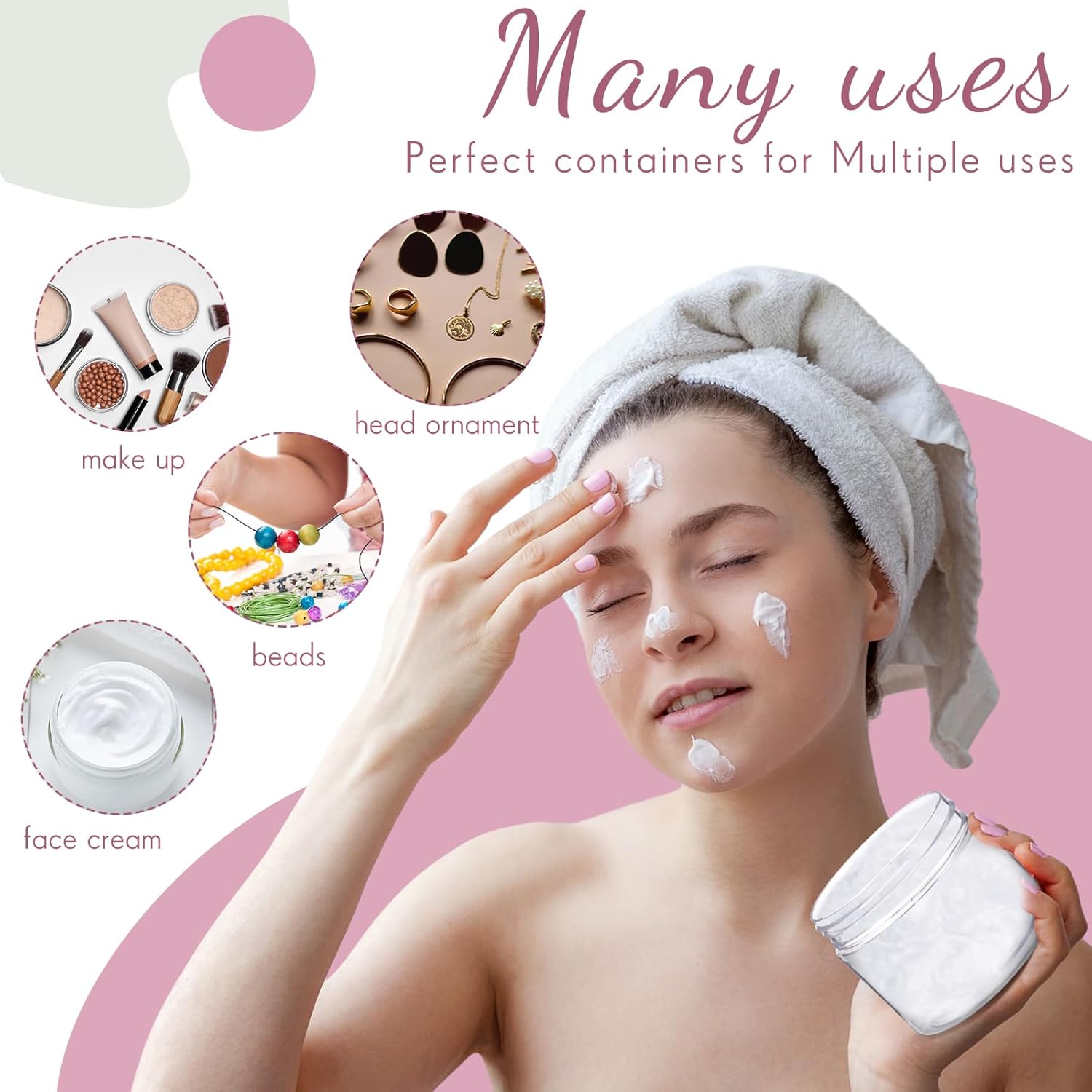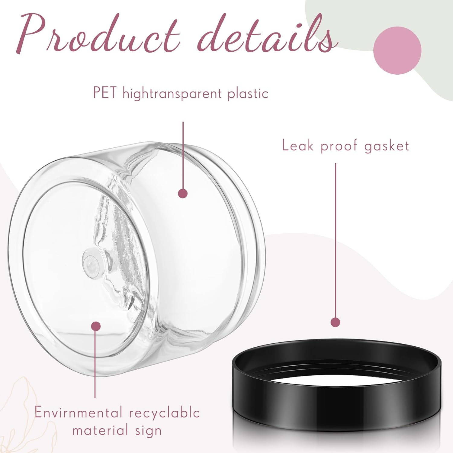 • Quality material: the 4 oz plastic jars with lids are made of quality clear plastic, without odd smell, does not contaminate your skincare products, stable, high temperature resistance, a black plastic cover with lid, sealed storage and leak proof