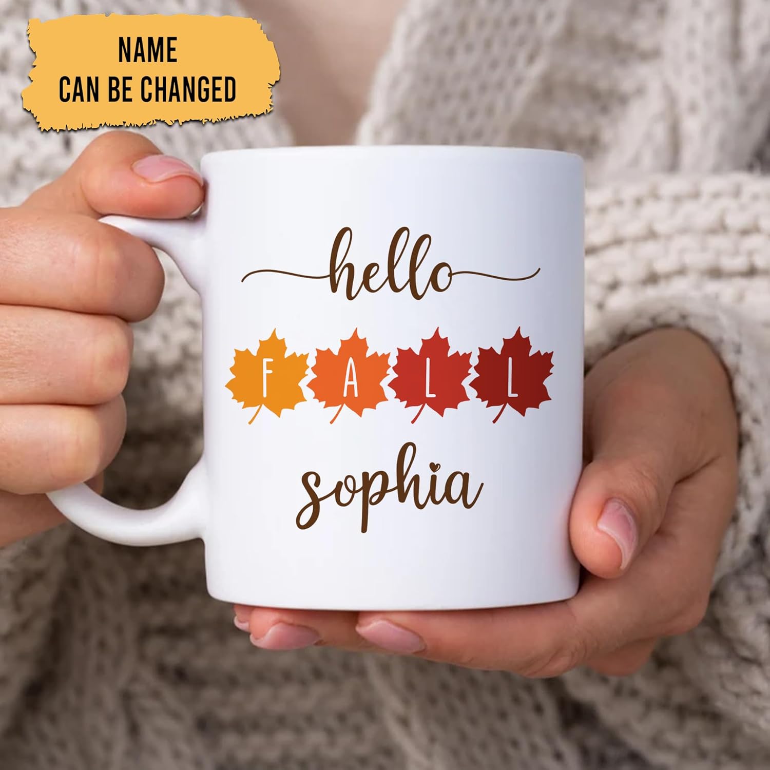 Hyturtle Personalized Fall Autumn Mug Gifts - Hello Fall - Custom Name Coffee Cup Ceramic Mug 11oz 15oz - Autumn Gifts - Fall Thanksgiving Decor Gift - Birthday Christmas