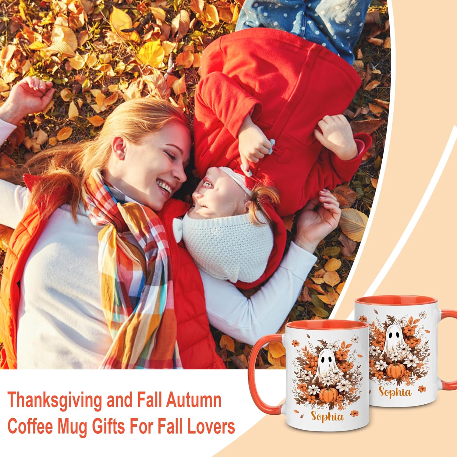 Hyturtle Personalized Fall Halloween Mug Gifts - Spooky Ghost - Custom Name Coffee Cup Ceramic Mug 11oz 15oz - Autumn Gifts For Her - Fall Thanksgiving Decor Gift