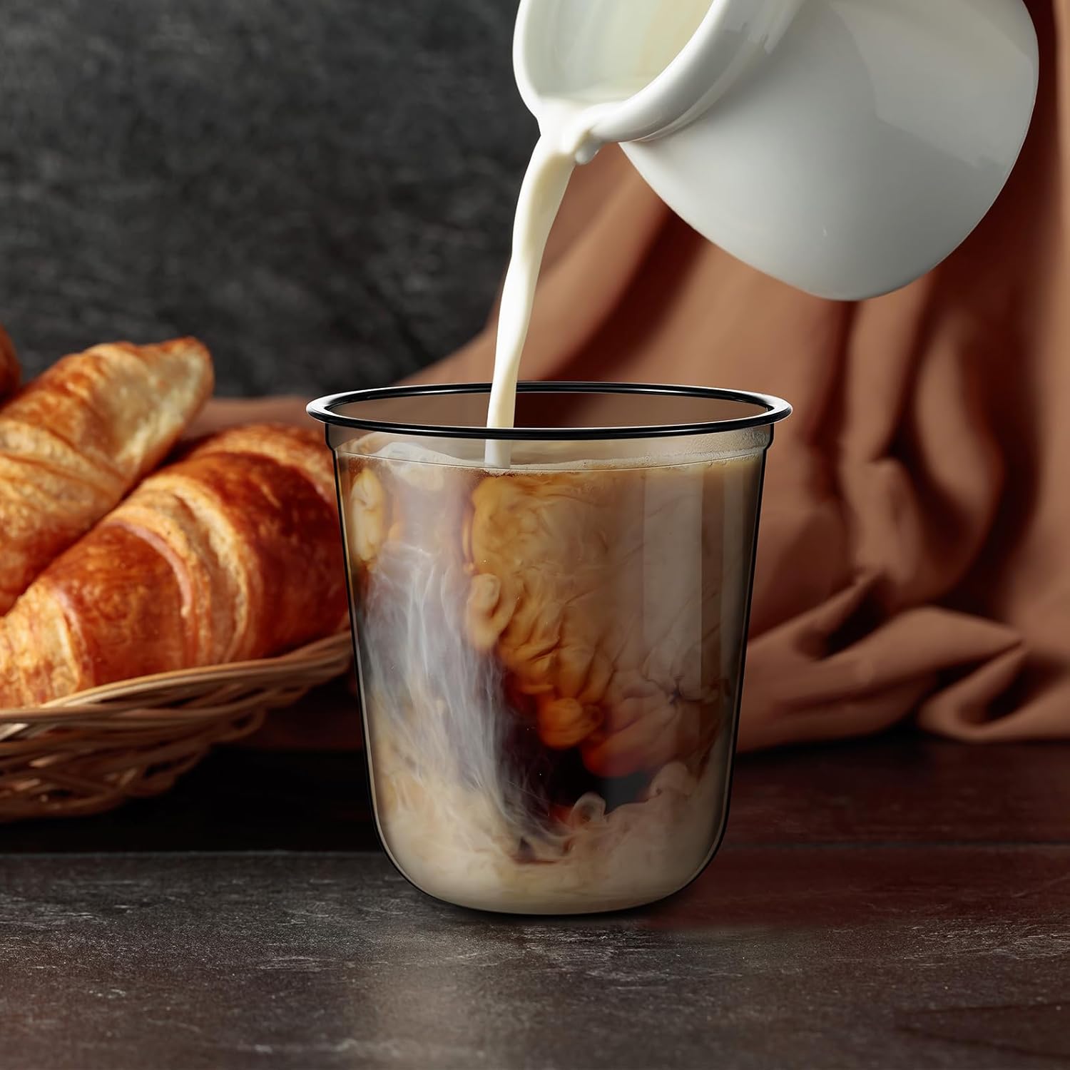 Disposable Stemless Glasses 12oz Crystal Plastic Wine Glasses Clear Classic Pet Cup for Meeting Weddings Birthdays Cocktail Christmas Party Supplies(Black,50pcs)