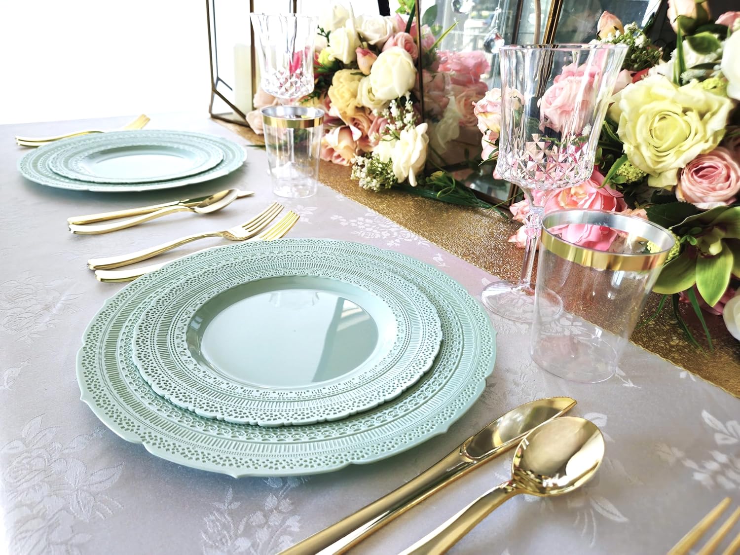 " OCCASIONS " 240 Plates Pack,(120 Guests) Extra Heavyweight Vintage Wedding Disposable/Reusable Plastic Plates 120x11'' Dinner + 120x8.25'' Salad/Dessert Plate (Chateau Mint)